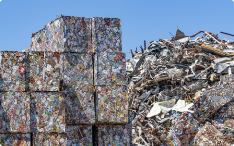 缶容器はリサイクルの優等生。スチール缶94.4%、アルミ缶**99.8%**という高い再資源化率で、循環型社会の中心的な役割を果たします。飲料はもちろん、家庭内消費の多い食用缶でも高い回収が期待できます。